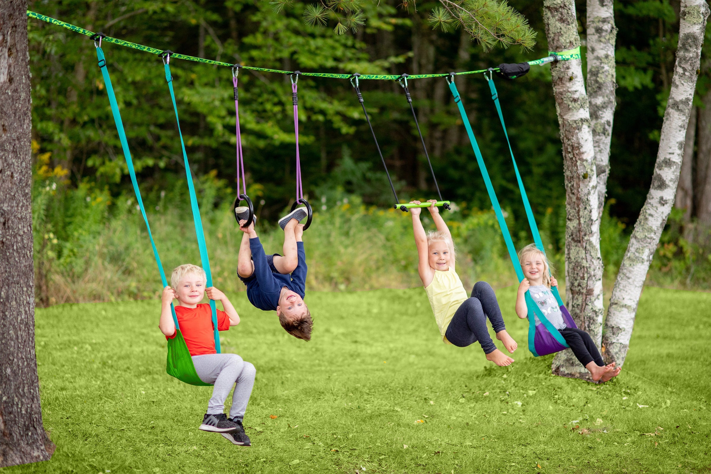 Take a look at our durable Slacklines. They are made of the same material and include the same ratchet system as the Ninjaline, making for an easy installation.